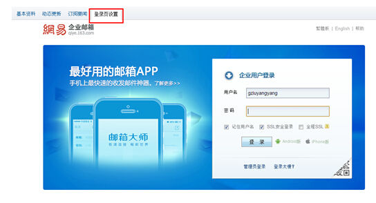 jnljkf@qiye.163.com考虑到管理员在修改登录页样式后,需要退出企业邮箱才可查看,不仅增加了管理员的操作流程,而且使工作效率大大降低。此次新版自定义登录页新增“所见即所得”模式。通过该功能,管理员可以在管理后台直接修改登录页的样式,包括logo、图片、文字等等,并可立即查看修改后的效果,在简化操作流程的同时,优化了操作体验,提高了工作效率。此外,顶部和底部超链接也可以自定义编辑,用户可以根据企业需求来设置,非常方便。